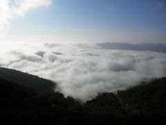 雲海テラスまでロープウェイゴンドラで約10分ほどです。40%の確率とのことです。始発は日の出に合わせ早起きしました。途中、ゴンドラの窓越しに色づいた木々の景色は最高によかったです。