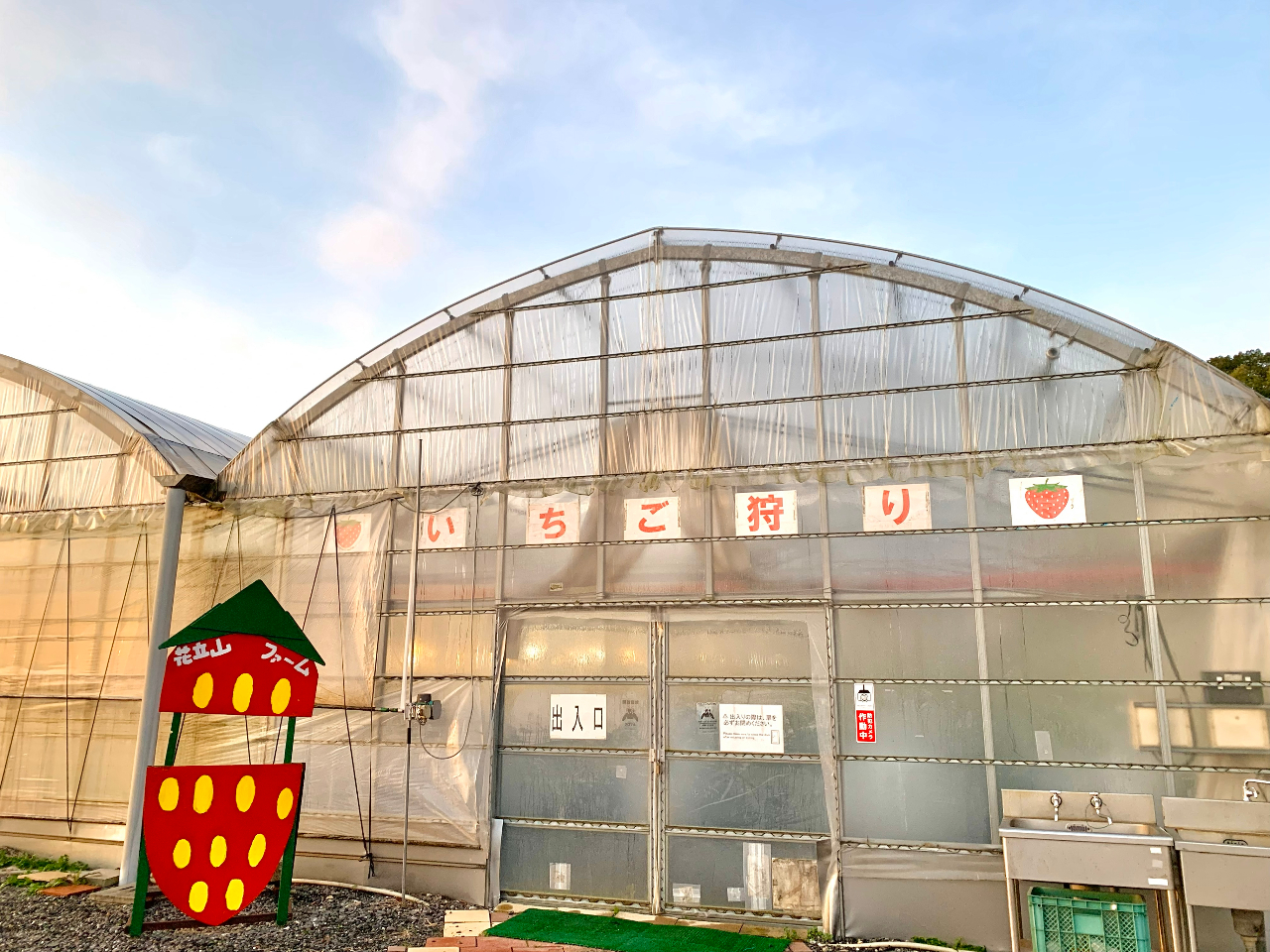 温泉宿泊施設併設のいちごハウスなので、中規模で品種は少な目かと思います。