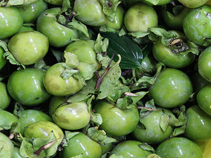 柿の実を発酵させてできる日本独自の染料です。タンニン成分を多く含み、防臭や防虫、抗菌効果があるとされています。