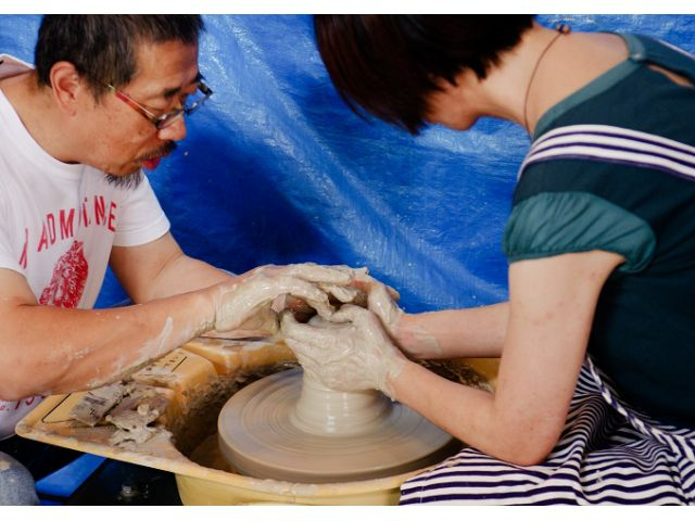 お子様から大人まで一緒に楽しく作品づくり、手びねりと電動ろくろ両方を楽しむことが出来る人気のプラン!じっくりと手びねりで土と格闘した後はロクロでイメージを膨らませた作品作り!初めてでも安心!大丈夫!