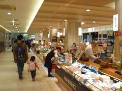 1階にはお土産物屋さんがたくさん入っています。福島土産はもちろん、宮城県名物の萩の月も売っていました。上の階には洋服屋さんや本屋さんが入っているので地元の方も多く利用しているのではと思います。駅直結なので、買い忘れたお土産があっても安心です。