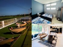 観光や食事処のご案内はもちろん、夜には屋上のハンモックで星空を眺めたり、庭の季節の花を楽しんだりと、