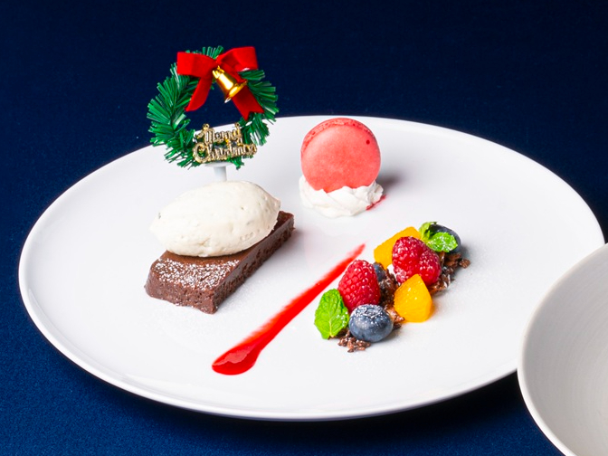 牛フィレと鴨をどちらも味わえるメインや、クリスマスらしいオードブル・デザートなどの期間限定コース