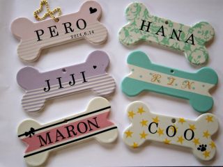 好きな色や柄を貼って大切な愛犬のボーン型のネームプレートを作っていただけます♪