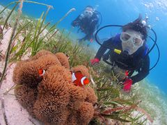 スタッフさんにはとても丁寧に指導いただきありがとうございました。妻は初で、どうしても鼻呼吸にはなるしマスクは上がるし、心折れかけたらしいですが、足がつくところでコツを掴むまでゆっくり丁寧に教えてもらえたので無事潜れました。ニモの卵も見れたし、素敵な動画もいただいたし、浅瀬なので、水中が明るくてきれいだし、プライベートなのでゆっくりニモ観察できたし、とても楽しかったです。練習除いて48分も潜れました。お二人共お上手らしいです。また、宮古島の星空のこと、サガリバナのことも教えていただき、満喫できました。