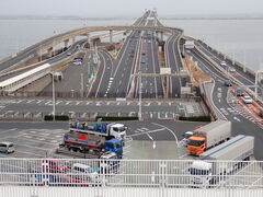 木更津側から混雑表示で車列に、2階柱ギリの空きスペースに駐車、他車は3〜4階へ。