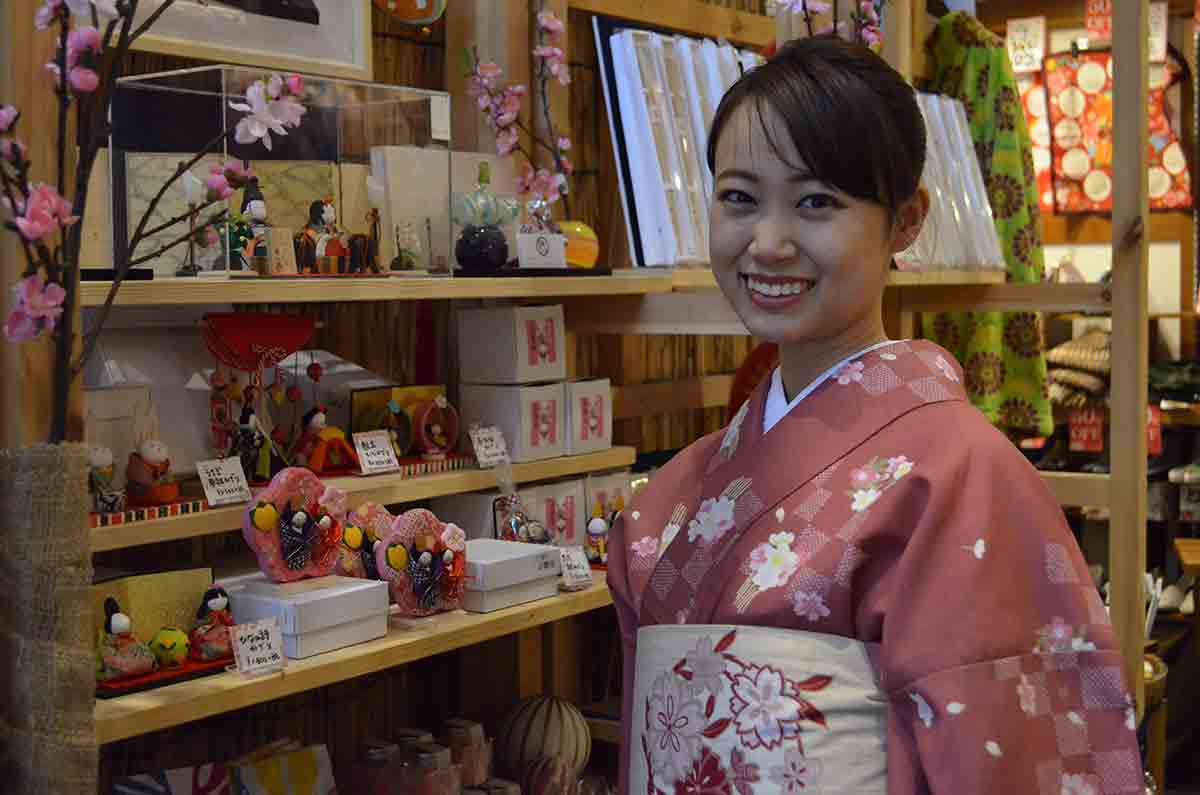 お店は川越名所「時の鐘」より徒歩1分と近く、着物で散策するには最適な立地にあります。