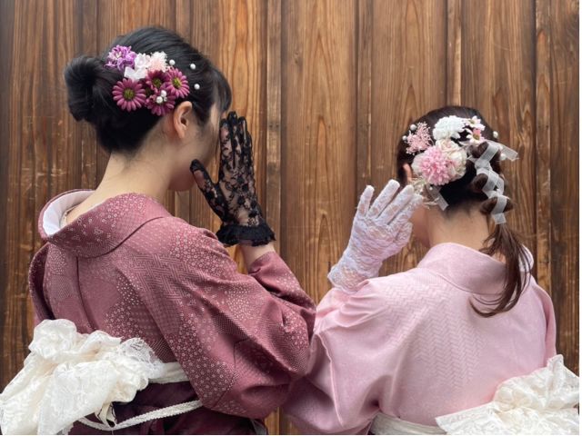 | 料金に含まれるもの | 消費税・着付・着物/浴衣・帯・帯飾り・履物・足袋(着物着用時)・下着類・バッグ・ヘアアクセサリー *冬季は羽織・ショール | 1予約あたりの予約可能人数 | 1人〜4人 |