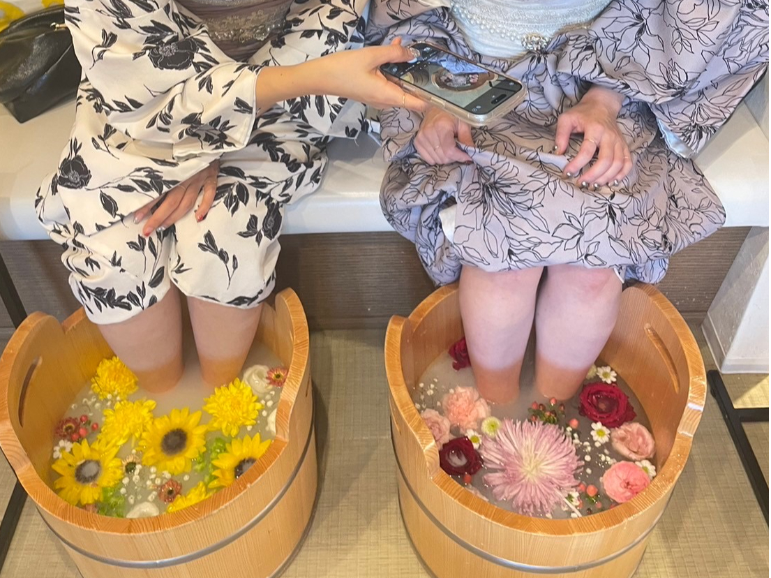 着物を着てお花の足湯とセットで写真に映えるおすすめプランです。