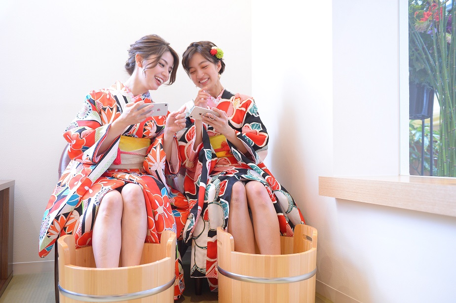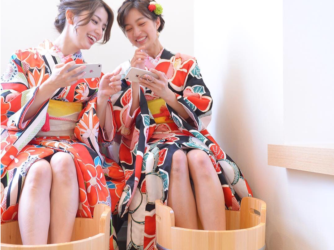 着物レンタルと、季節のお花を浮かべた足湯がセットになった大人気メニューです!旅の思い出になること間違いなし◎女子旅・カップルにおすすめ♪