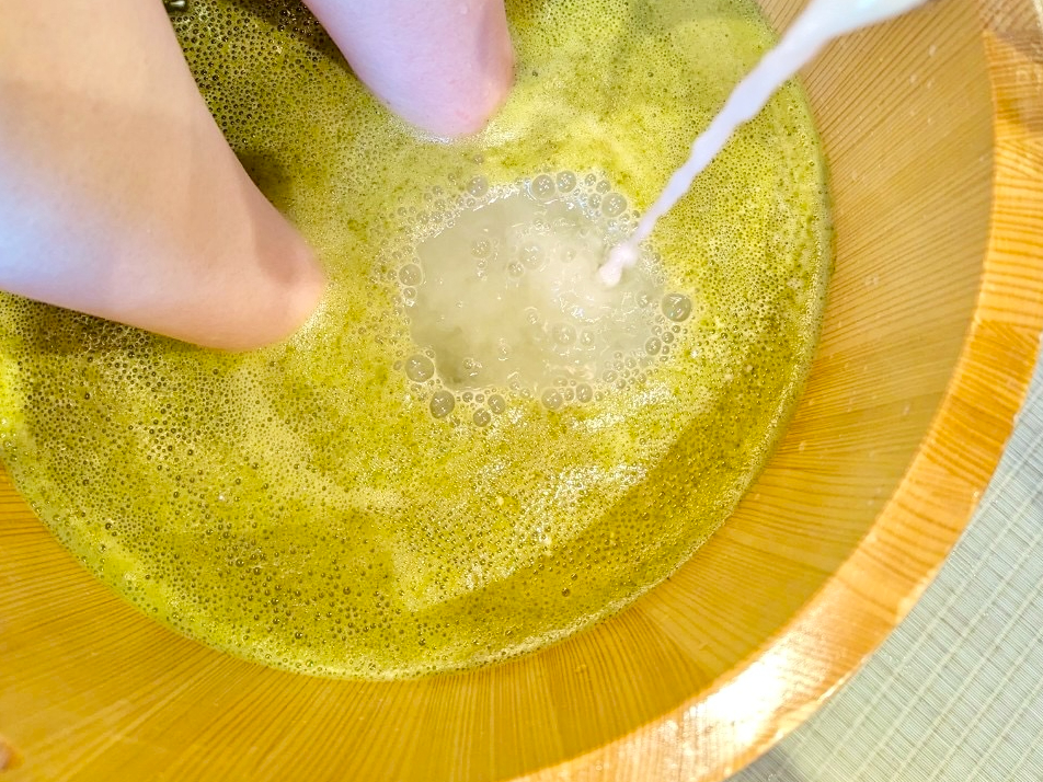 嵐湯名物!【抹茶の足湯コース】和を感じるお抹茶の香り高い”しゅわしゅわ”泡立つ足湯< 和−Nagomi−>カップルにオススメ!|京都・嵐山