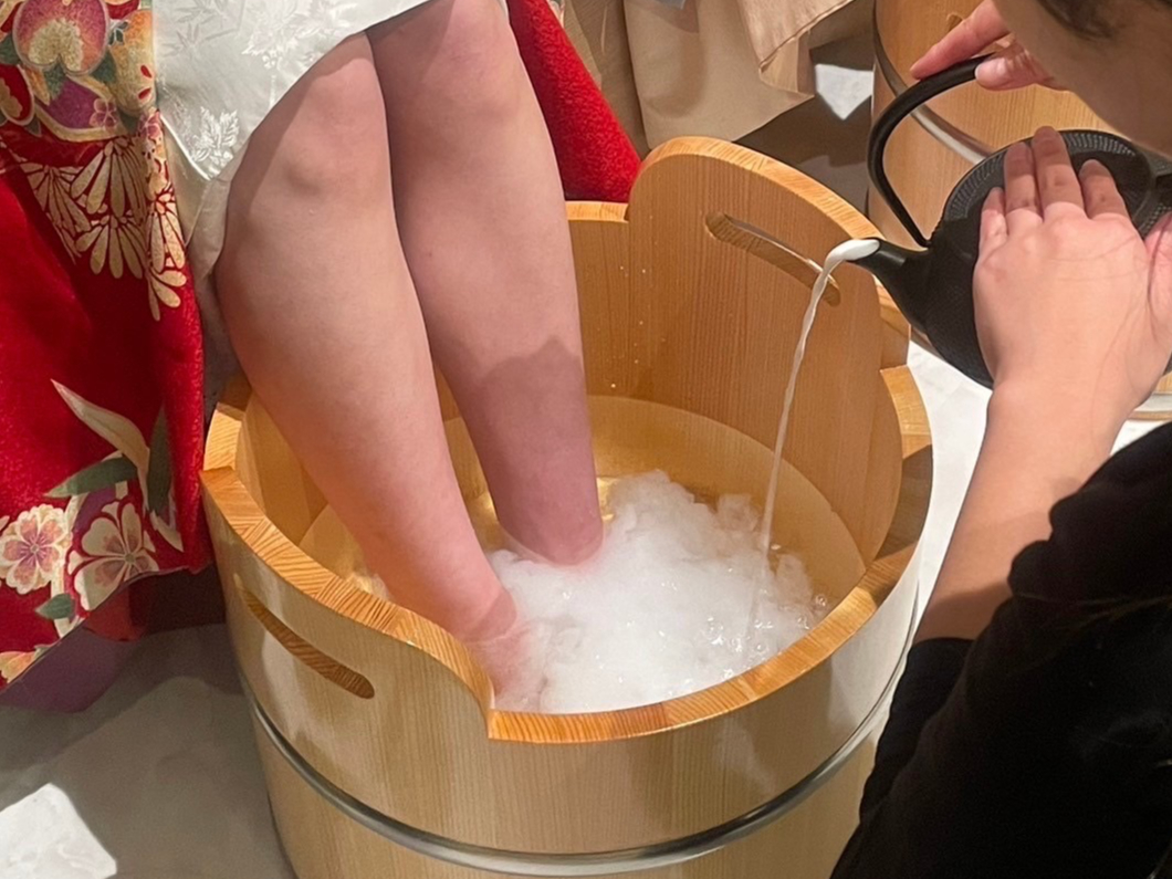 足湯とセラピストによるフットマッサージをお楽しみください。リラクゼーション