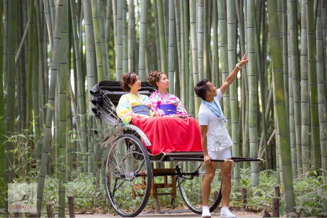 嵐山定番の人力車での散策と足湯体験セットになったプラン♪嵐山を堪能できて思い出になること間違いなし!女子旅・カップル・ご夫婦におすすめです◎