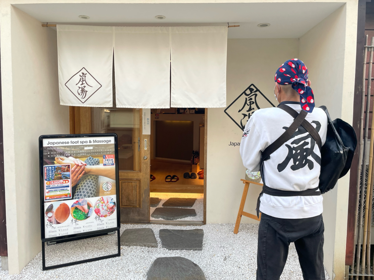嵐湯名物!【抹茶の足湯+フットマッサージ30分コース】和を感じるお抹茶の香り高い”しゅわしゅわ”泡立つ足湯< 和−Nagomi−>カップルにオススメ!|京都・嵐山