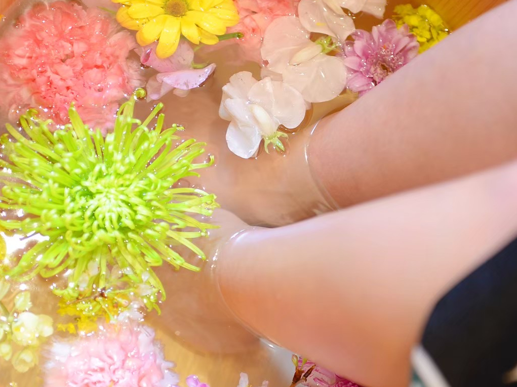 【お花の足湯+フットマッサージ50分コース】テレビで話題!お花を浮かべた足湯< 雅−Miyabi−> 女性におすすめ!|京都・嵐山