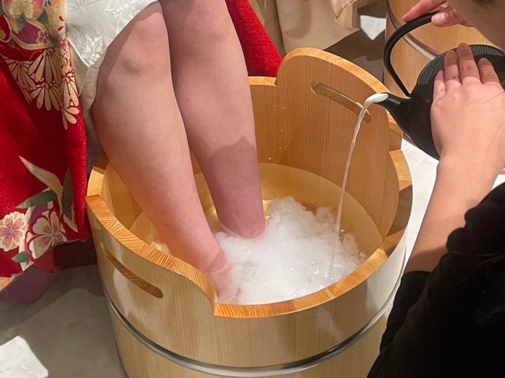 足湯とセラピストによるフットマッサージをお楽しみください。リラクゼーション