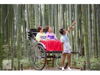 嵐山定番の人力車での散策と足湯体験セットになったプラン♪嵐山を堪能できて思い出になること間違いなし!女子旅・カップル・ご夫婦におすすめです◎