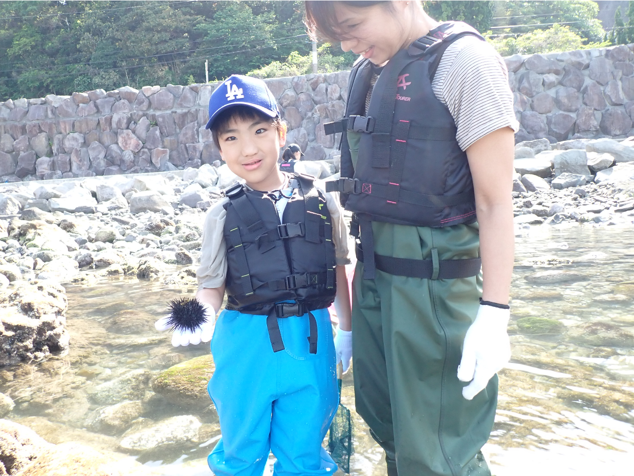 胴長を着て体を濡らさず磯遊び、海遊びをしましょう。海のプロが同行して、海の事、生物の事、注意したい事などを教えてもらえるので安心です。