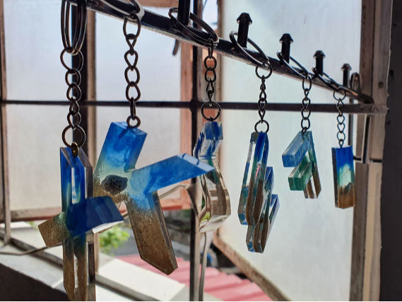 余ったレジンで、アルファベットキーホルダーも作ることができます。