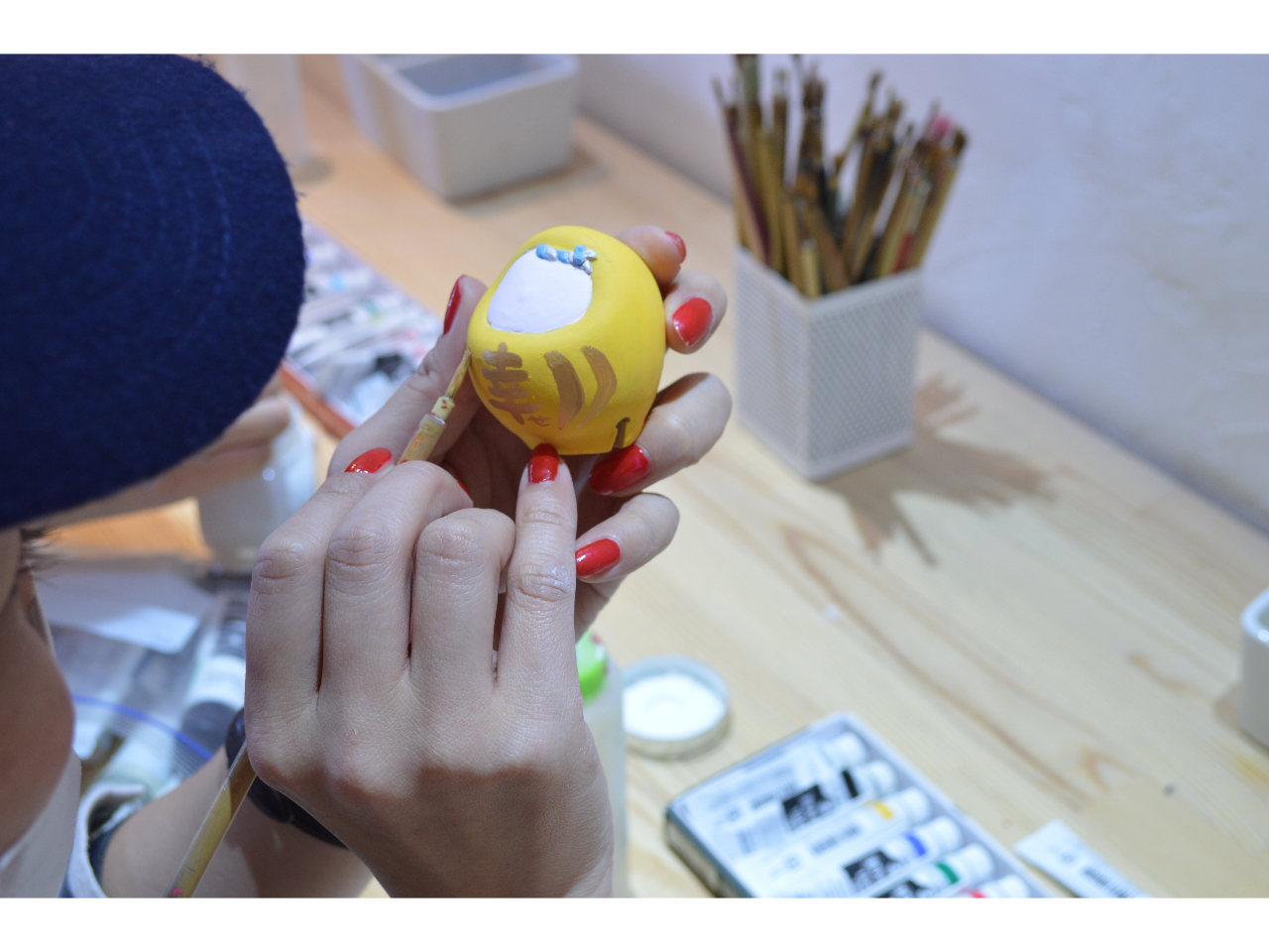 先生のお手本を元に、 合格祈願だるまを作りました。