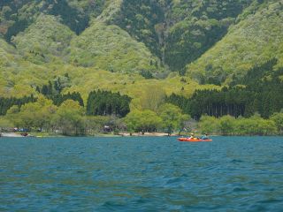 新緑の奥琵琶湖畔へカヌーで漕ぎ出ると、湖上を吹き抜ける萌ゆる香りに癒されること間違いなし!?