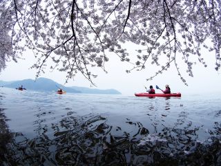 ・奥琵琶湖名物の桜を見ながらカヤックツアーを体験して頂けます★