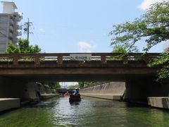 新緑の中、何個かの橋の下をくぐり、どんぶらこ気分でクルージング