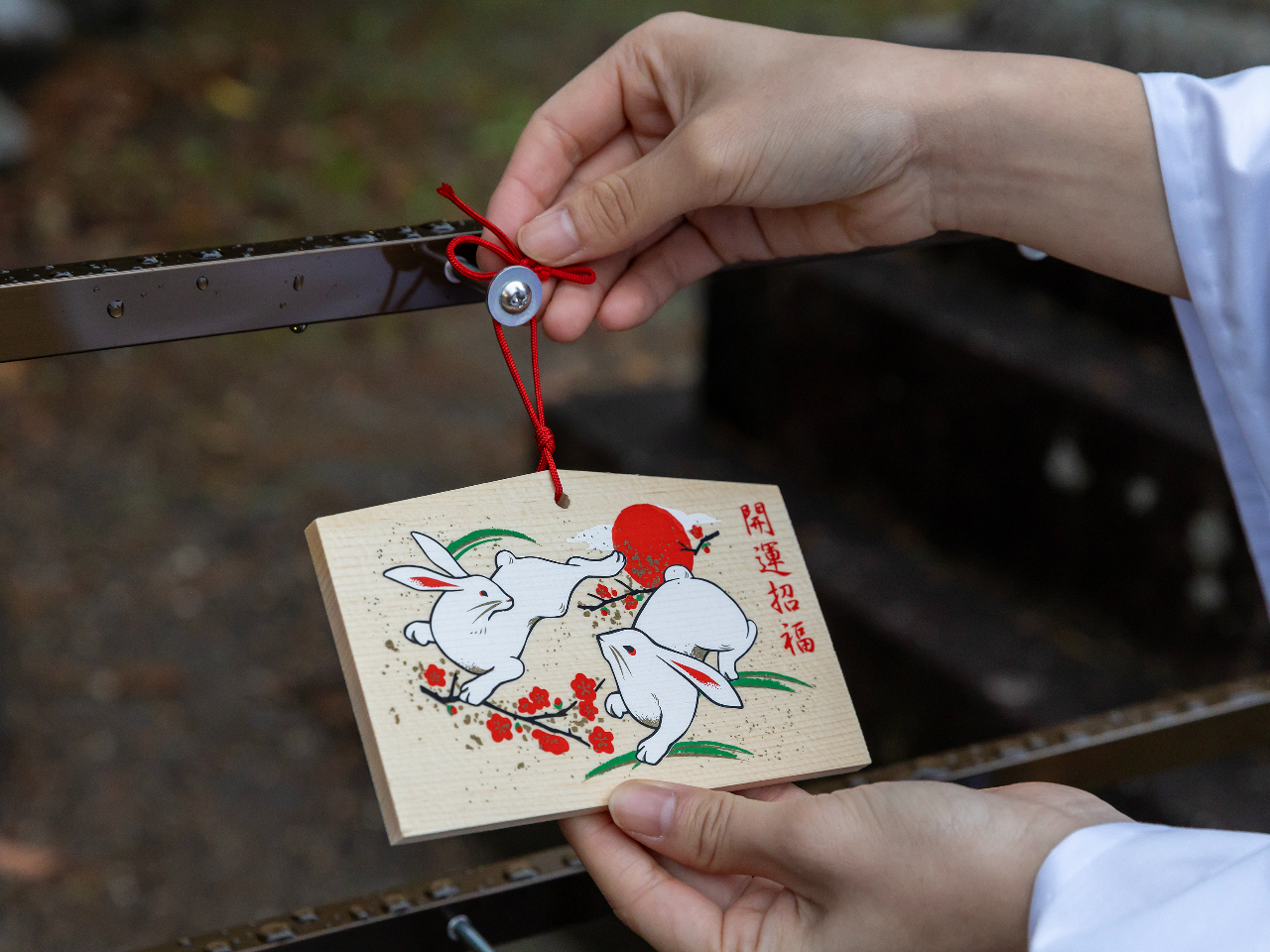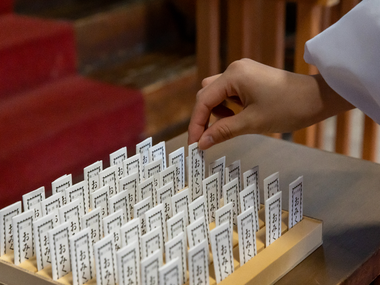 B最後はおみくじで運試し、願い事を絵馬に書いて願掛けをおこないます。