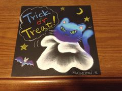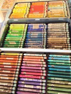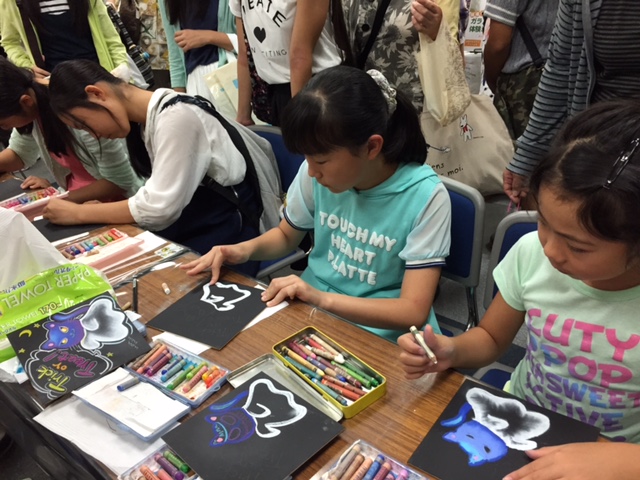 チョークアートは初めてということで、作品サンプルから選んでカーボン紙で転写、その上にオイルパステルで