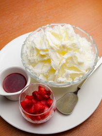 ほどよい甘さのミルク氷がベースになっているかき氷で、ソースやフローズンフルーツをお好みでトッピングして楽しむことができます。