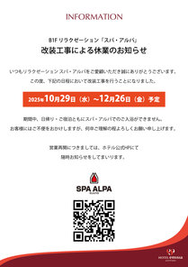 【重要】 スパ・アルパ改装工事による休業のお知らせ