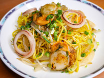 帆立やいかがゴロっと入った、魚介の旨みあふれる塩焼きそば。