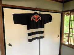 カメイは日本石油(現ENEOS)と関係が深く、そのリスペクトから、日石の社章であるコウモリを襖の取っ手や欄間の透かしに使っておられたそうです。ガイドさんに教えて頂きました。