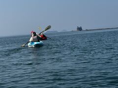 「海も風も絶好のコンディションですよ」とのインストラクターからの説明。湖のような海面を休みながら約2時間のツアー。相方はシーカヤックデビューだったので元ノ島一周のシュートツアー。台風の影響で海が濁っていたのが残念。途中、ビルか島影のような中国国産初の大型クルーズ船の入港が見えました。