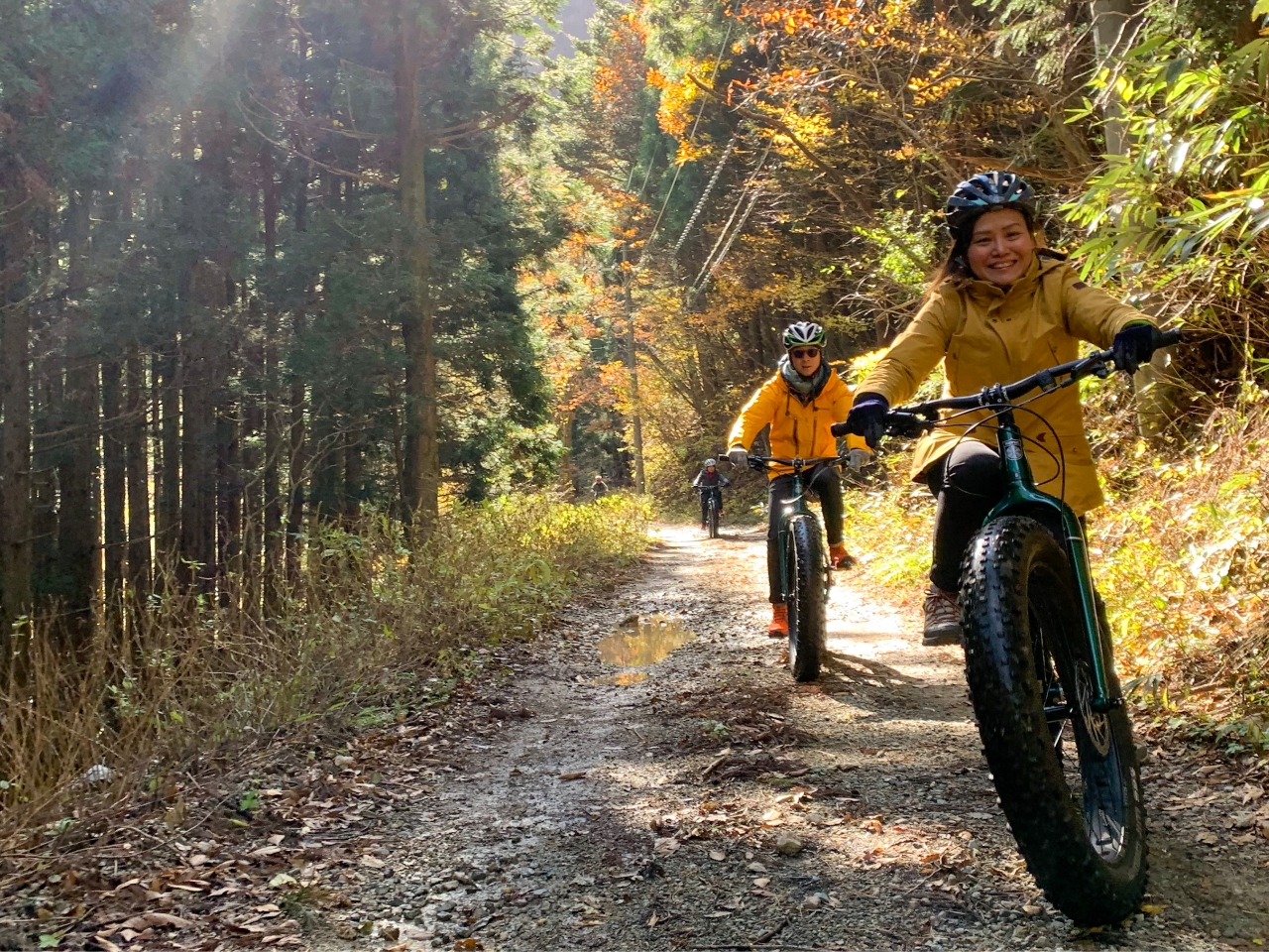 ファットバイクで林道グラベルライド 渓流で淹れたてコーヒー付