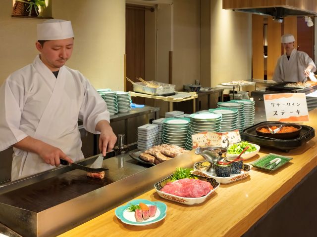 宿泊なしの夕食にビュッフェと温泉を楽しむ日帰りプランです