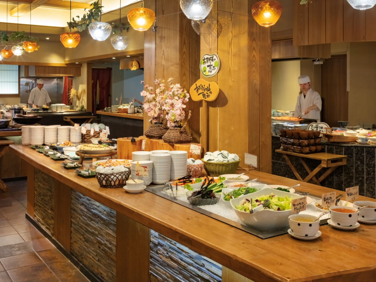 宿泊なしの夕食にビュッフェと温泉を楽しむ日帰りプランです