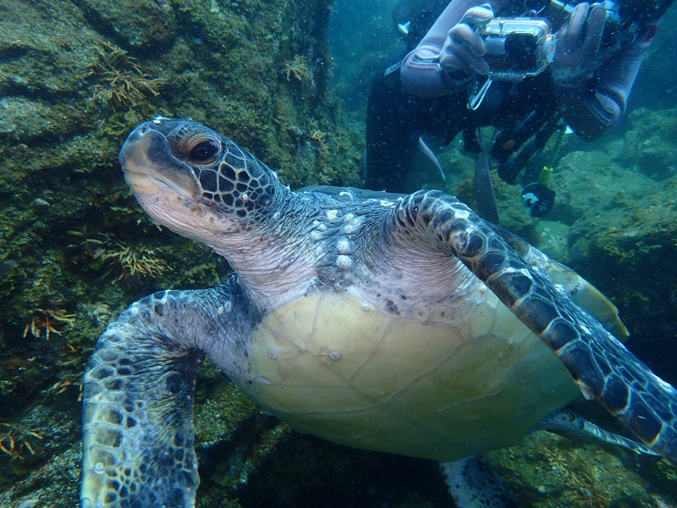川奈ビーチにはウミガメが住んでいます。運がいいとウミガメにも会えます。