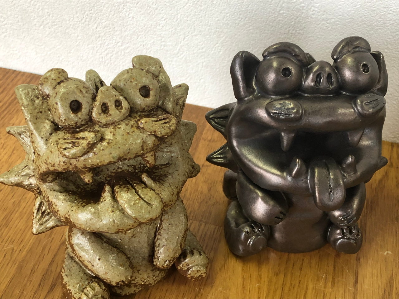 お皿はありきたりだなぁ…と思ってたところで出会ったシーサー作りで、旦那とお邪魔しました。イラスト付きの説明書と、先生の分かりやすい説明で楽しく作ることができました。不器用な旦那でも可愛いシーサーを作れて大満足です!何十年ぶりに粘土に触れられて、昔の図工の時間を思い出しました。置物なので末長く飾っていきたいと思います!この度はありがとうございました。またご縁がありましたらぜひよろしくお願いします。