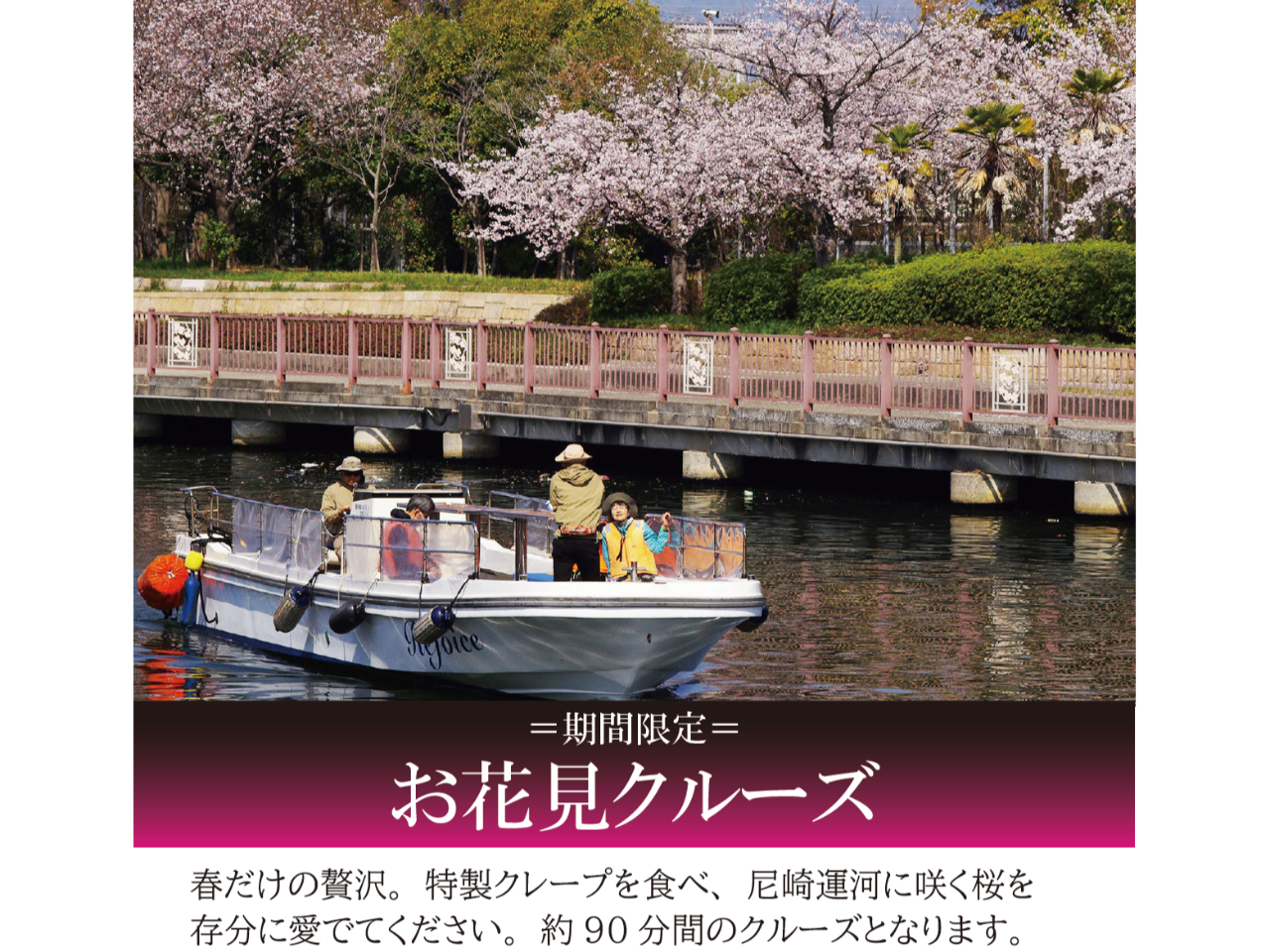 約90分間、尼崎運河の桜を見ながらのクルージング。