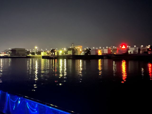 静かな運河内とライトアップされた尼ロックの夜景。阪神間の臨海部が見渡せるナイトクルーズになっています。クルーズ前にはBBQでお食事付!少し早めに来てレンタル品で釣りを楽しむ事も可能です!