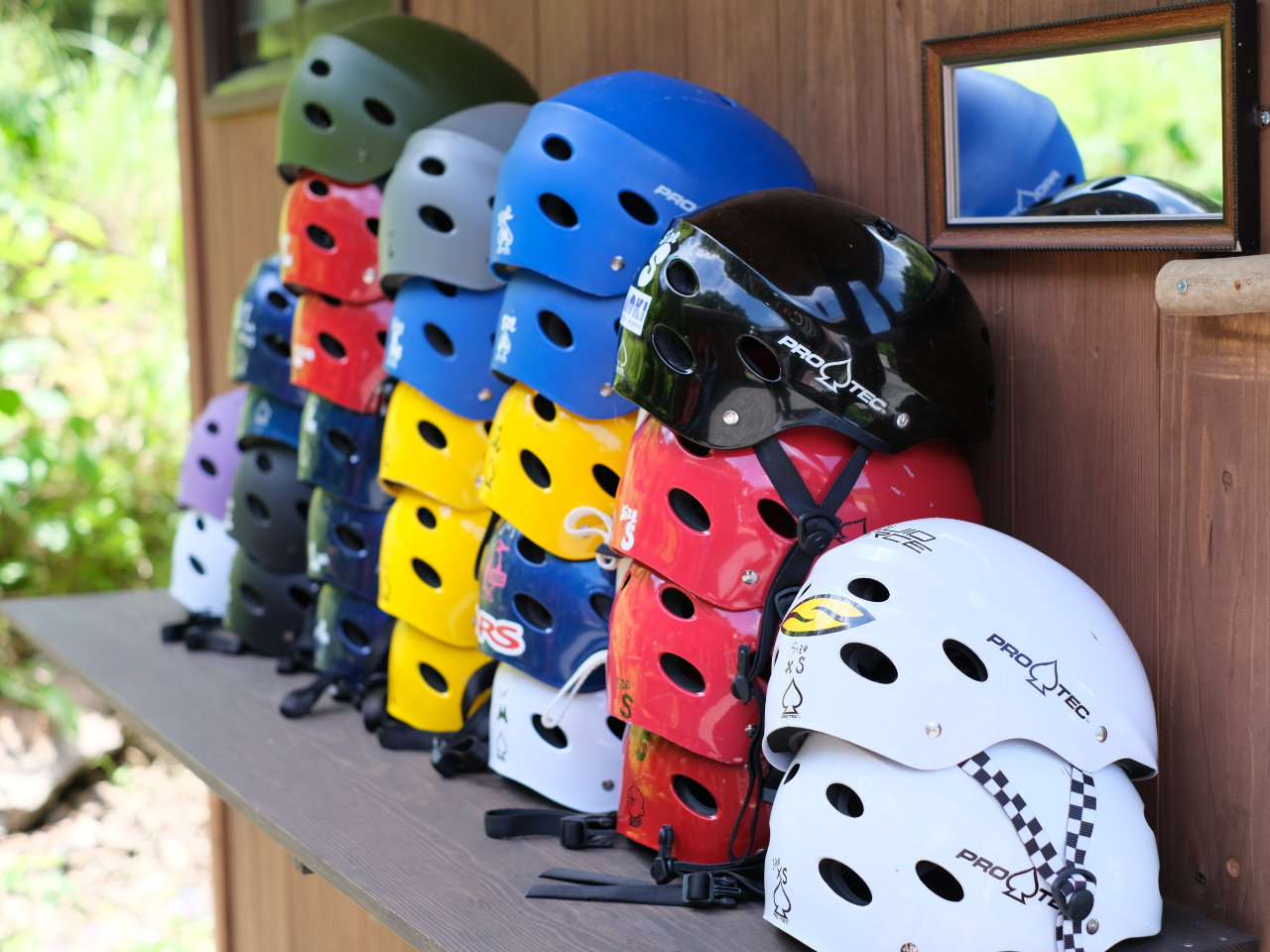 A受付・着替え後、ライフジャケットとヘルメットの受取り!
