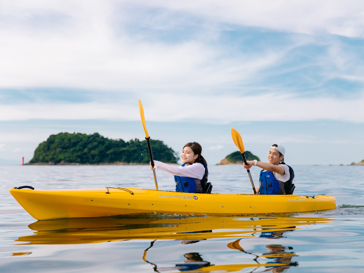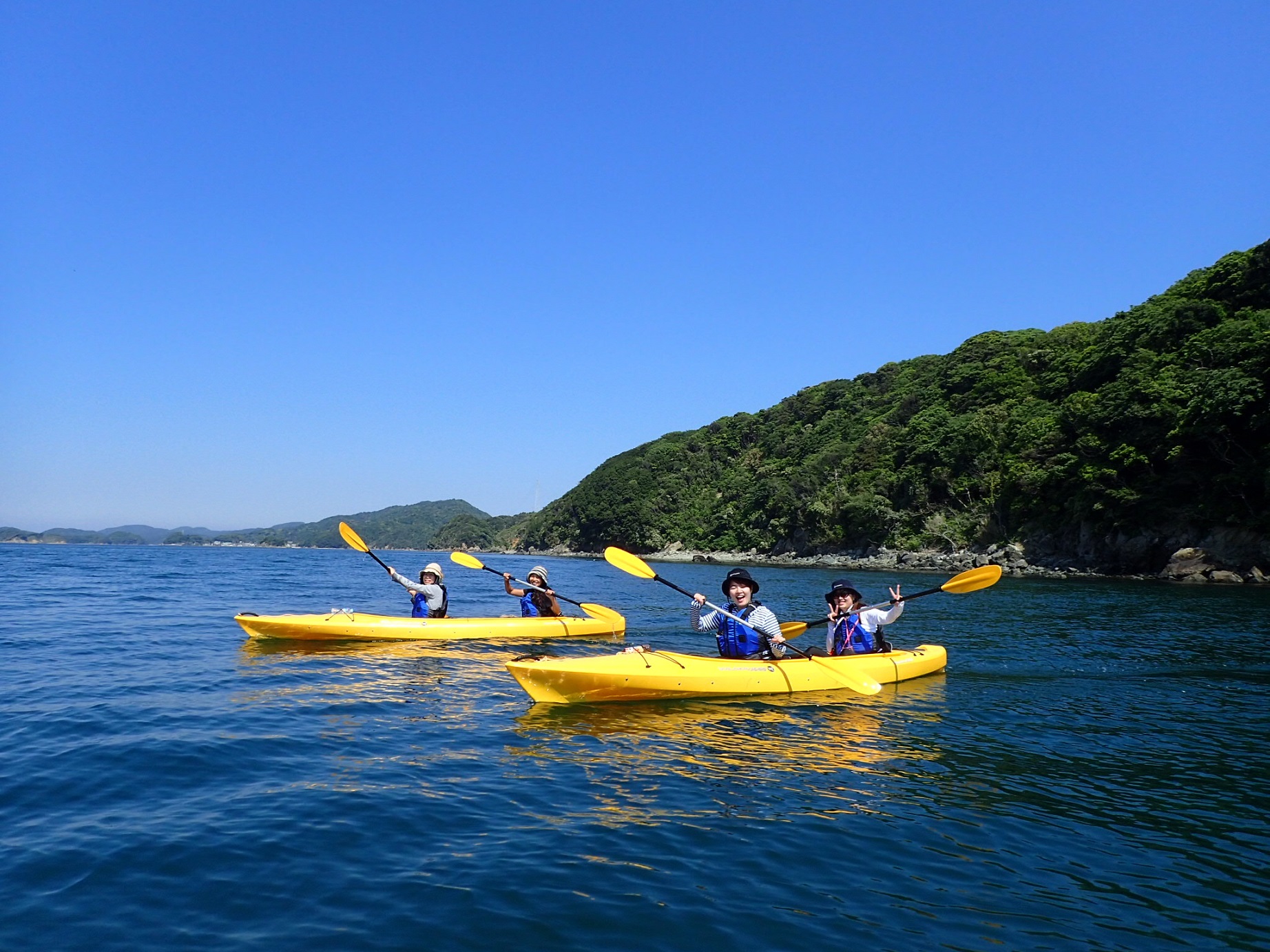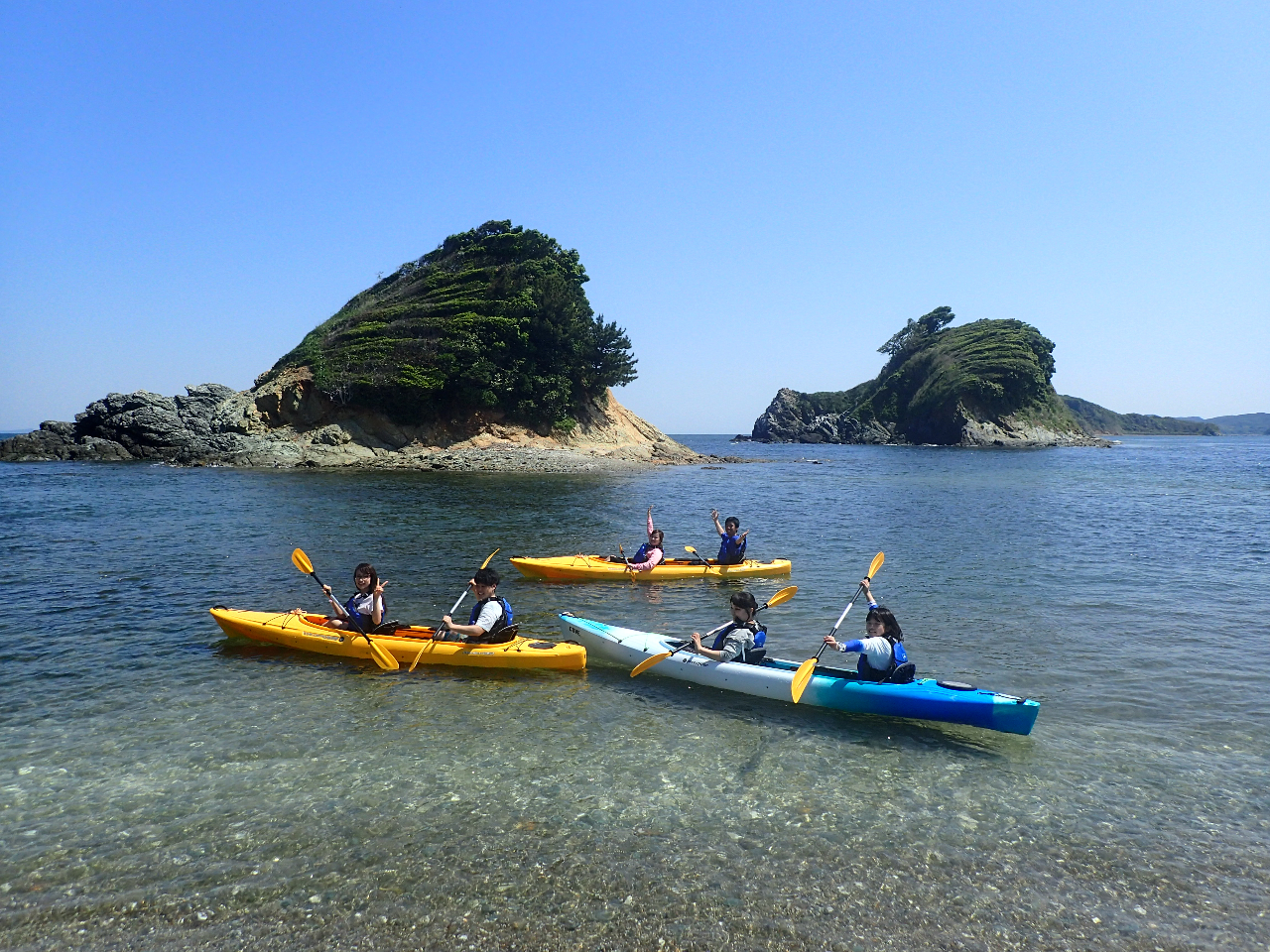 二人乗りカヤックを使用するため、奇数でのご参加の場合は一名がガイドと同乗して頂きます。