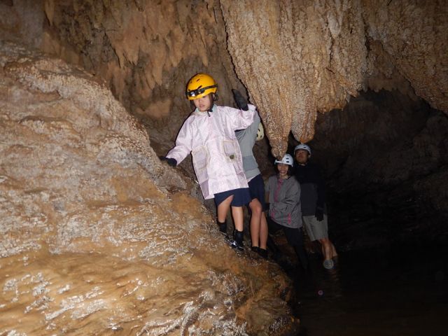 西表島には、人の手が全く入っていない手つかずの鍾乳洞が沢山あります。ヘルメットにヘッドライトを付けて、洞窟探検ケイビングに出かけましょう。沖縄県一のピナイサーラの滝壺とセットになったコースです。