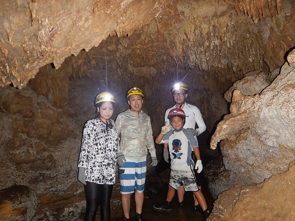 お父さんも一度は憧れた、探検隊気分!ヘルメットにヘッドライトを付けて洞窟探検に出発!!