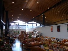 国道から200mほど奥に入ったところに大きな駐車場と施設があります。木を基調としたナチュラルな雰囲気で、トイレも清潔です。ショップには様々な商品が所狭しと並び、地場の新鮮野菜コーナーも小さいながらあります。屋外は庭園に彩られた色んな樹木の展示販売がされており、ちょっとした散歩で園内を楽しむ事ができます。レストランは11時からかな・・ウッドデッキのテラスで一休みと気持ちの良いコーナーも設けられていました。。