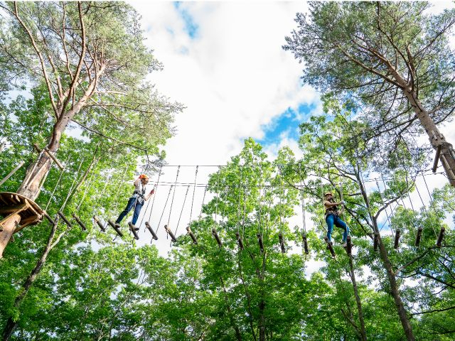 樹上10mにもおよぶ高さでのスリル満点のアクティビティをはじめ、