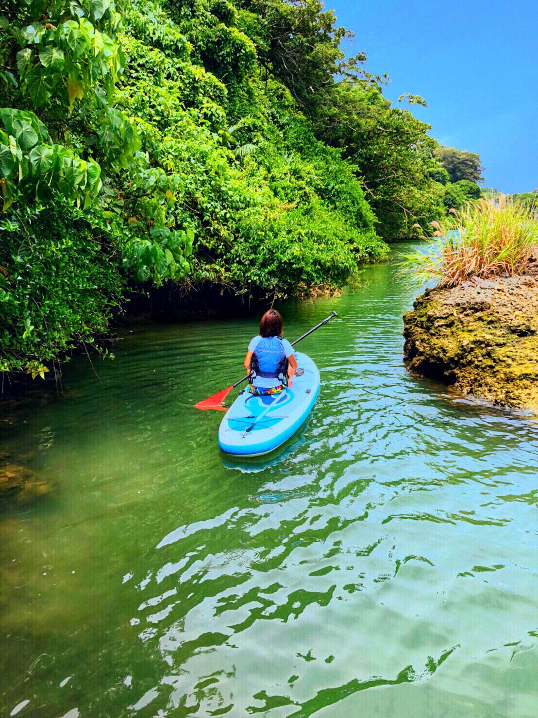 私たちが開催する比謝川は流れが穏やかでまるで湖の様♪初めて体験する方はリバーSUPが断然おすすめ!