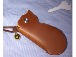 模様を彫って染色し手縫いで仕上げています。ハサミケース。