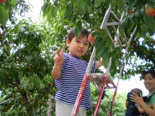 ・桃狩りの際に脚立を使用いただけますが、園内での事故の責任は負いかねます。充分足元に気を付けてご利用ください。
